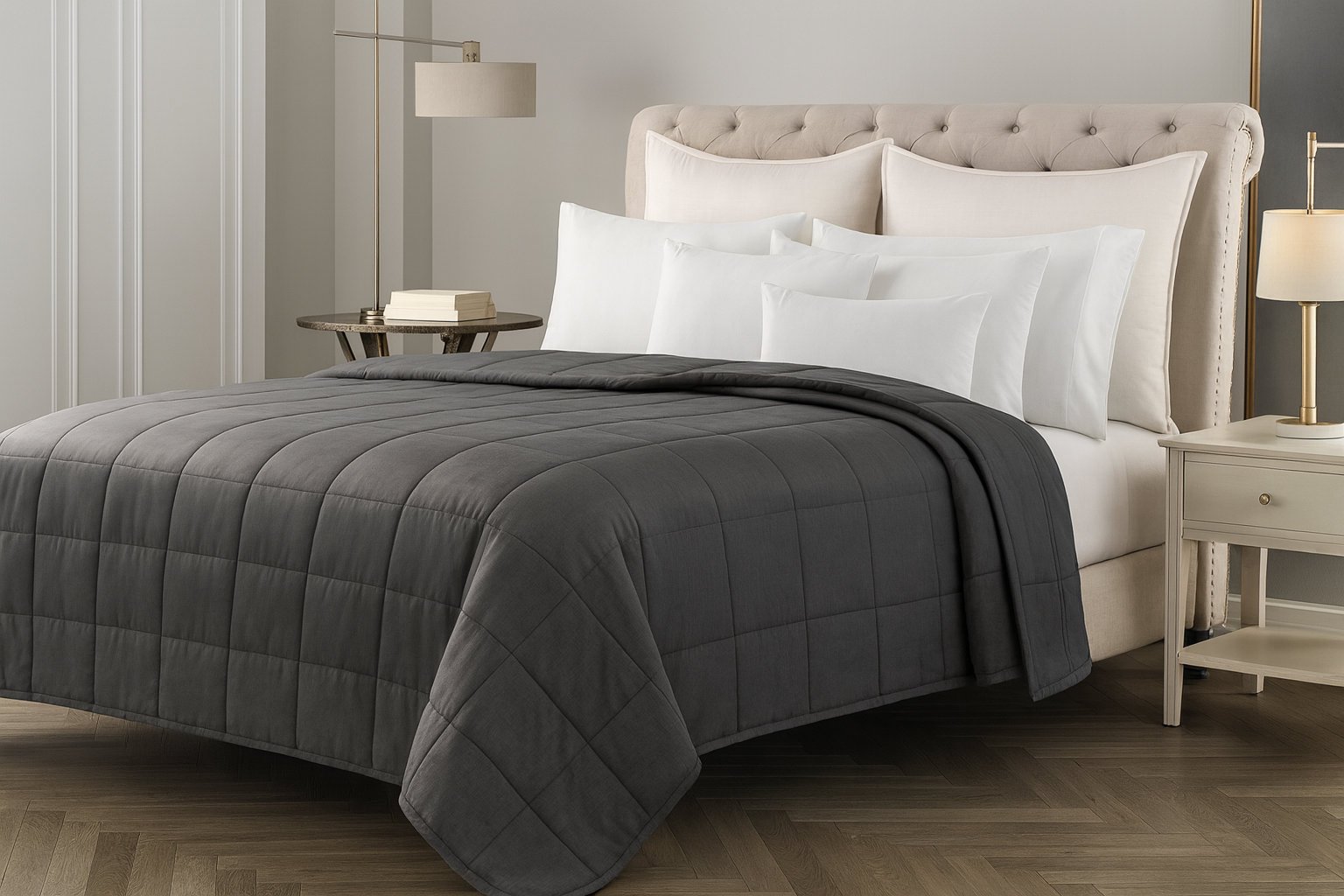 Une couverture lestée exerce une pression douce et répartie sur le corps grâce à son garnissage équilibré.