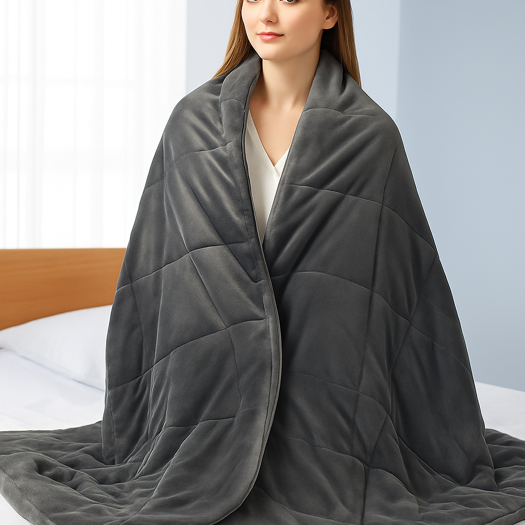 Nos couvertures lestées offrent une pression douce et répartie qui procure une sensation de calme et de maintien. Adaptées aux adultes comme aux enfants, elles apportent confort et tranquillité au moment du coucher.